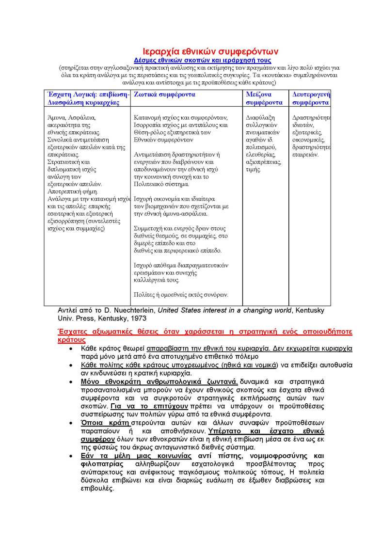 Σημειώσεις και διαφάνειες διάλεξης. Αντλεί κυρίως από το «Nuclear Strategy and European Security Dilemmas»και το «Πόλεμος και τα Αίτιά του» κεφ. 34.