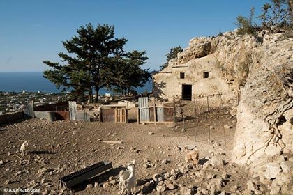 Προς τα πίσω, προς την πλευρά του πανύψηλου Πενταδάκτυλου, γύρω στα πεντακόσια μέτρα, βρίσκεται ο «κρημνός». Από πολύ μακριά εντυπωσίαζε. Ένα ερειπωμένο σπίτι «του Γερμανού» όπως το ονομάζαμε, παλιάς κοπής με κεραμίδια. Ερείπιο, γιατί μετά την αποικιοκρατία έφυγε ο Βρετανός ιδιοκτήτης. Φαίνεται ότι κάποιοι σήμερα το επισκεύασαν.