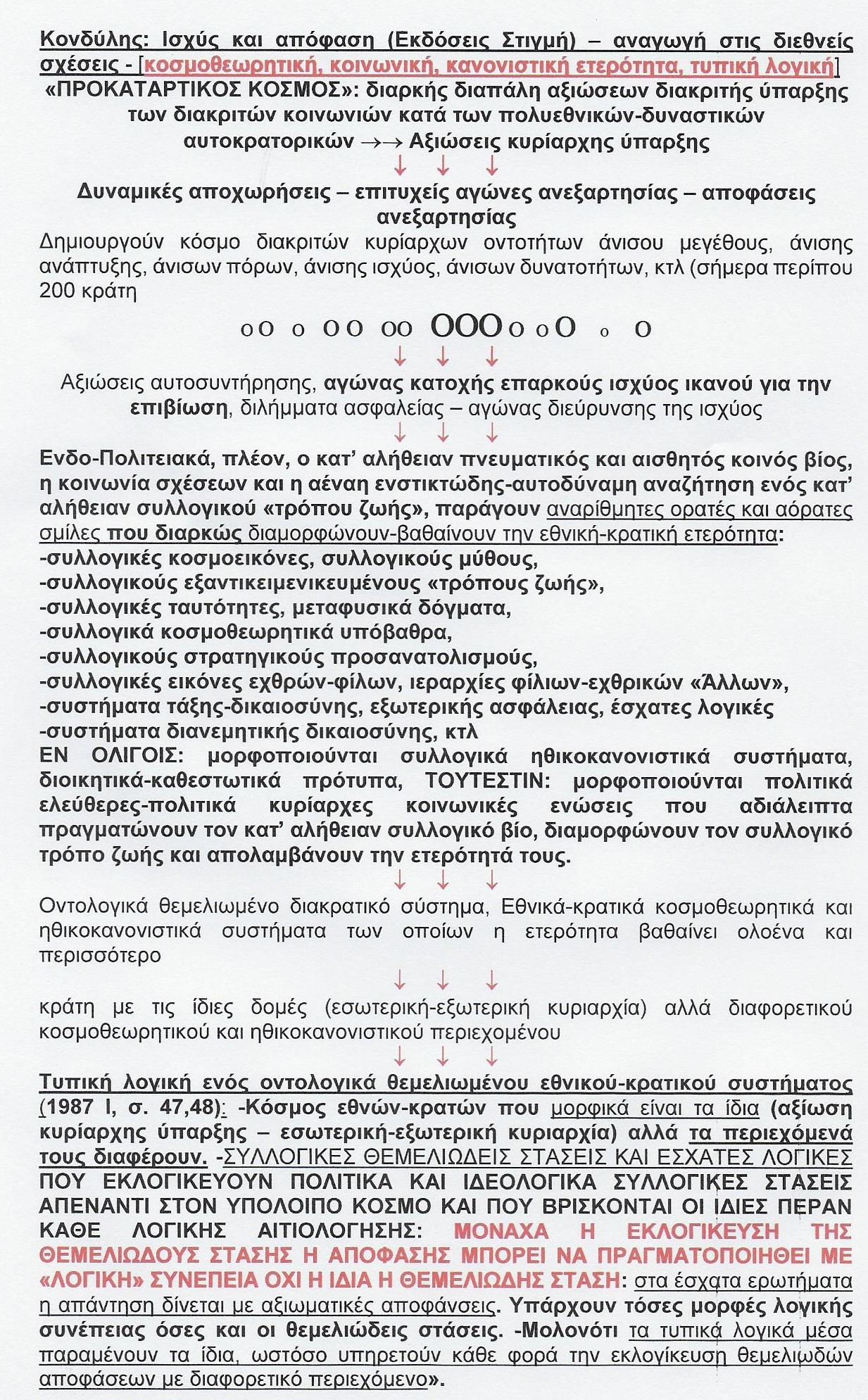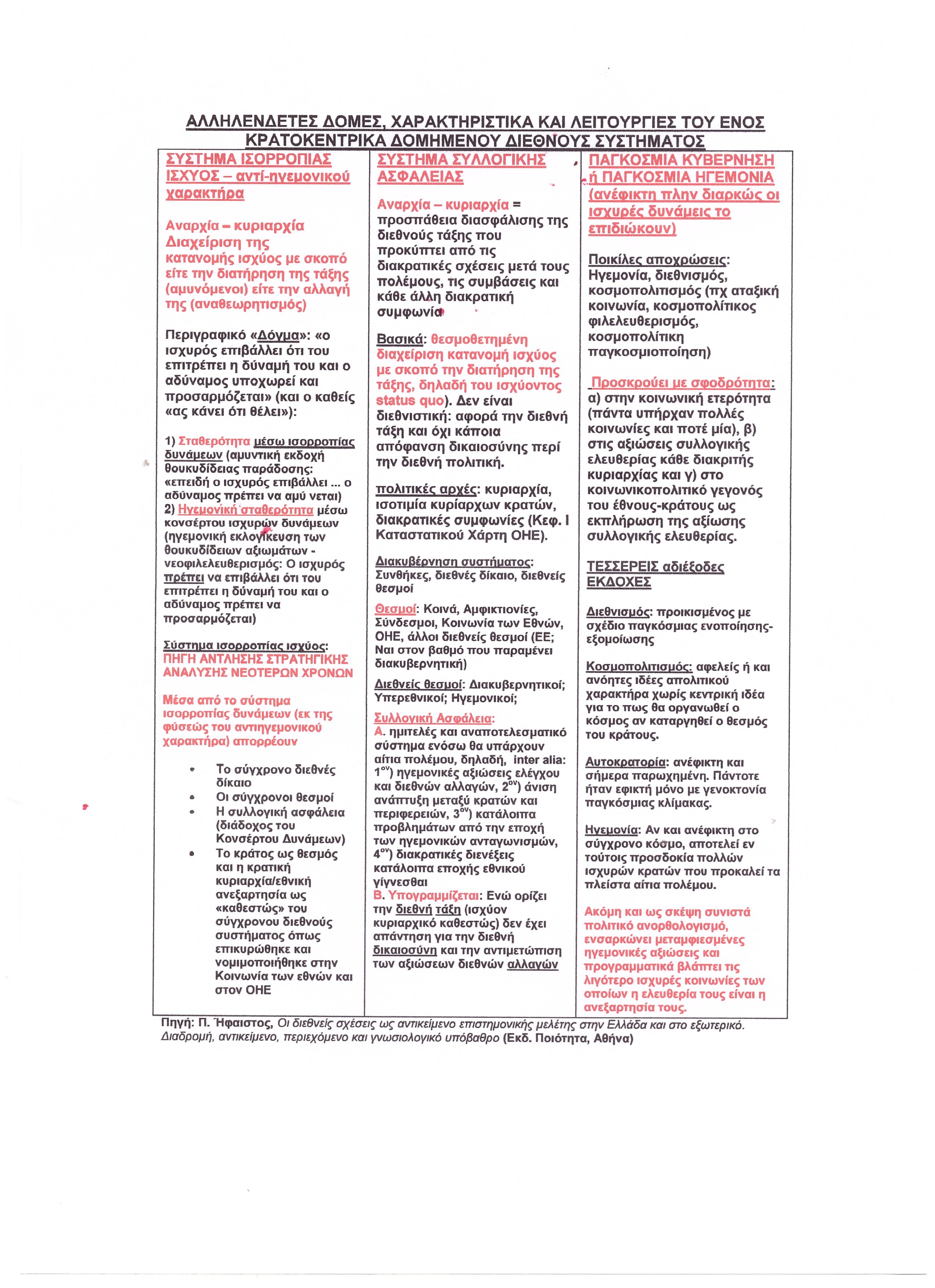 - Την συντριπτική κυριαρχία παραδοχών και θέσεων που δεν αμφιταλαντεύονται όσον αφορά τις ανελέητες πραγματικότητες του κρατοκεντρικού διεθνούς συστήματος