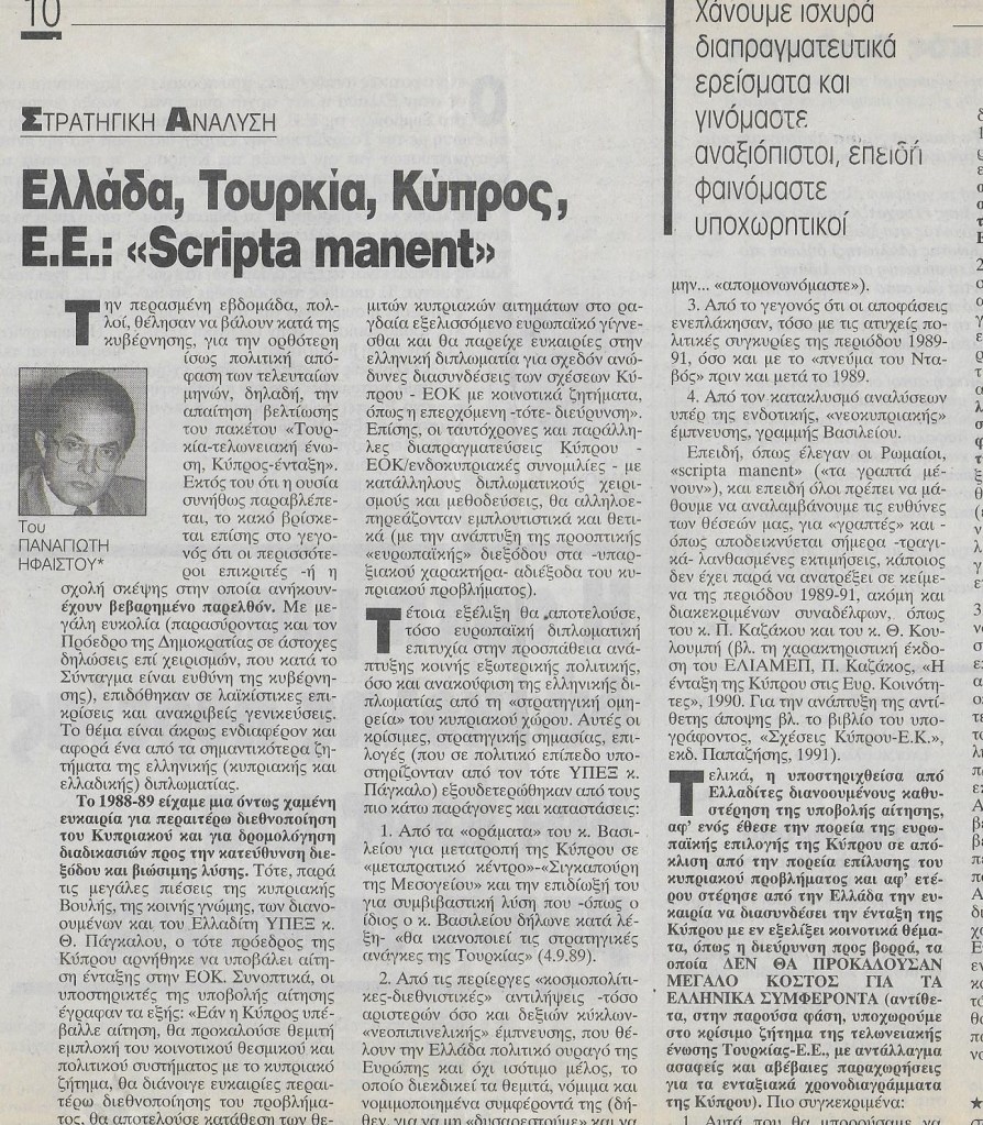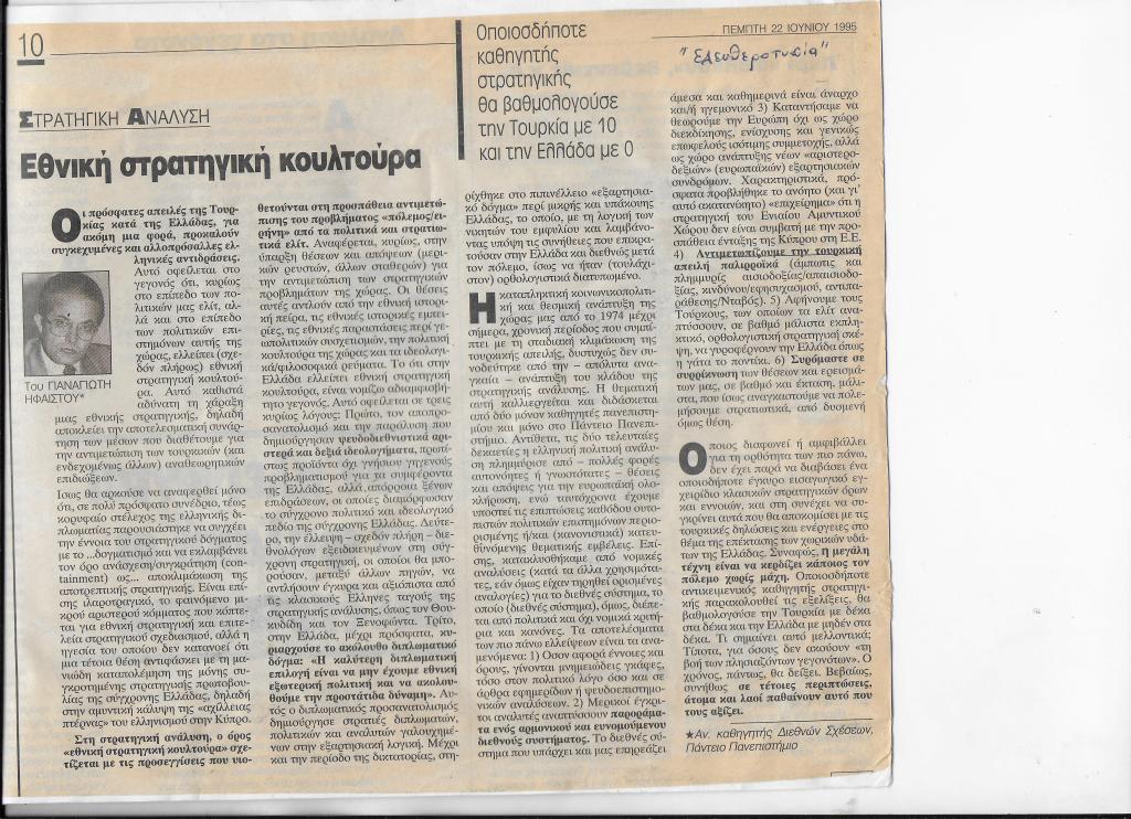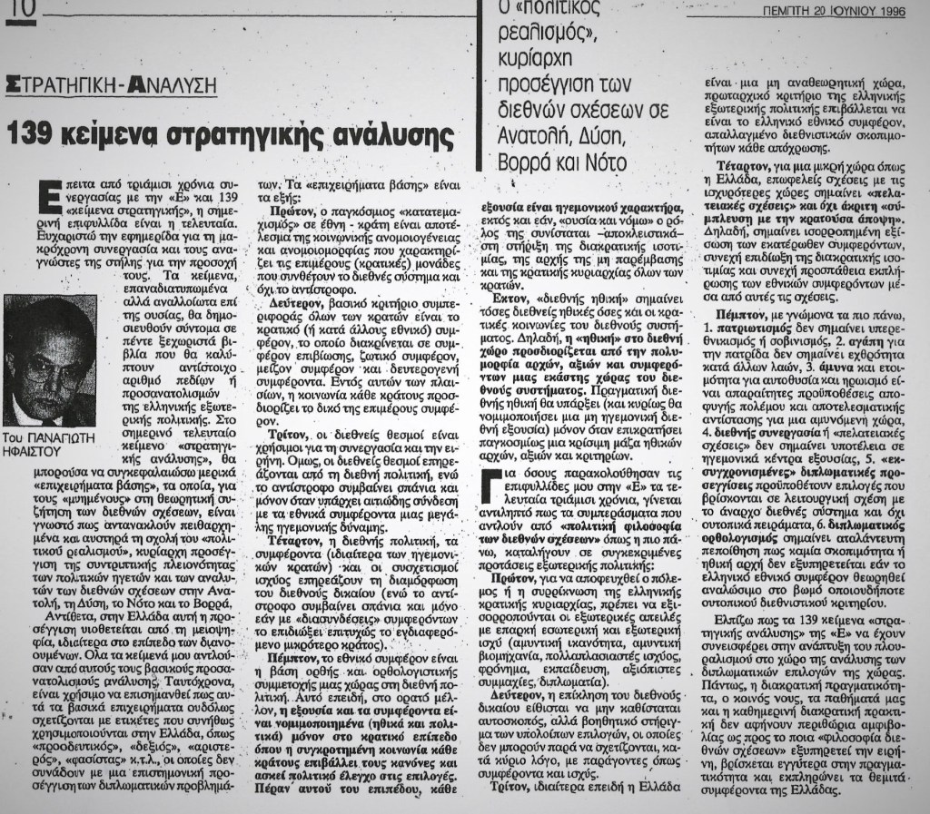 Παναγιώτης Ήφαιστος, Καθηγητής Διεθνών Σχέσεων και Στρατηγικών Σπουδών, Μάρτιος 1999, Το κείμενο αυτό σε παραπλήσια μορφή δημοσιεύτηκε και το 1998. Αντλεί βασικά από το βιβλίο «Ελληνική αποτρεπτική Στρατηγική»