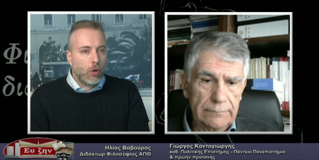 Ο Ομότιμος Καθηγητής Πολιτικής Επιστήμης και πρώην Πρύτανης του Παντείου Πανεπιστημίου κ. Γιώργος Κοντογιώργης με αφορμή την κυκλοφορία του βιβλίου του «Ελληνισμός και ελλαδικό κράτος. Δύο αιώνες αντιμαχίας, 1821-2021» από τις Εκδόσεις Ποιότητα, συζητά με τον Ηλία Βαβούρα, Διδάκτορα Φιλοσοφίας ΑΠΘ, στην εκπομπή «Ευ Ζην – Φιλοσοφικοί Διάλογοι» της 15.1.2021 στον τηλεοπτικό σταθμό Δίον TV.