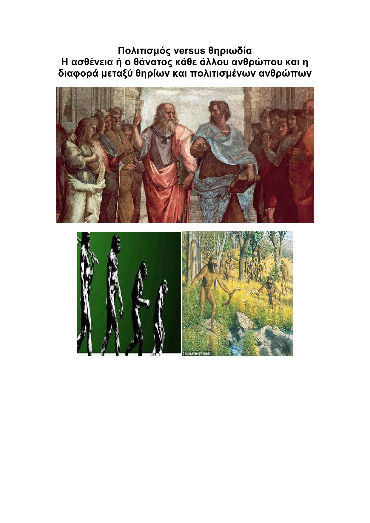 ανθρώπων οπουδήποτε και αν βρίσκεται πάνω στον πλανήτη Γη απλά διολισθαίνουμε προς την θηριώδη κτηνώδη προ-πολιτική εποχή. Δεν υπάρχει αμφιβολία ότι παρά την σταθεροποίηση του πολιτικού πολιτισμού και μάλιστα σε μερικές περιοχές του Αριστοτελικού ανθρωποκεντρισμού [Για κατανόηση του ανθρωποκεντρικού πολιτικού πολιτισμού κανείς εάν θέλει να το κατανοήσει πλήρως δεν έχει παρά να μελετήσει τα κείμενα του Γιώργου Κοντογιώργη] το εκκρεμές των συμπεριφορών και πράξεων κυμαίνεται και συχνά οδηγείται στον αντίθετο κτηνώδη και θηριώδη προ-πολιτικό πόλο. Εάν όμως ανεξαρτήτως εθνικής καταβολής θεωρούμε τον εαυτό μας πολιτικά πολιτισμένο δεν ωφελεί εάν λειτουργούμε προ-πολιτικά απλά ταυτιζόμαστε με αυτό κατά του οποίου υποτίθεται κάνουμε κριτική.