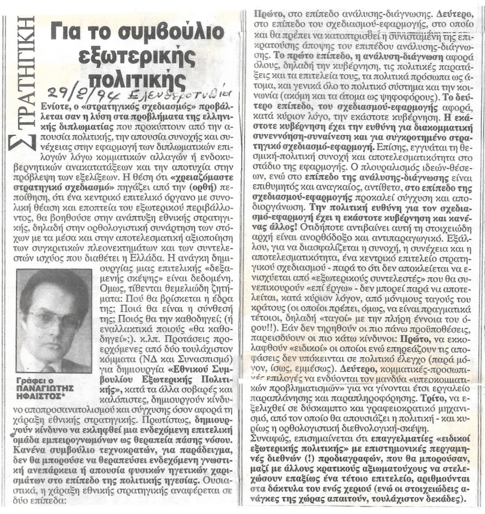 Κατηγορίες:στρατηγική ανάλυση, στρατηγική θεωρία, συμμαχίες, Γεωστρατηγική, Διεθνής πολιτική, Εθνική Στρατηγική, Ενιαίος Αμυντικός Χώρος, Κυπριακό, Τουρκία