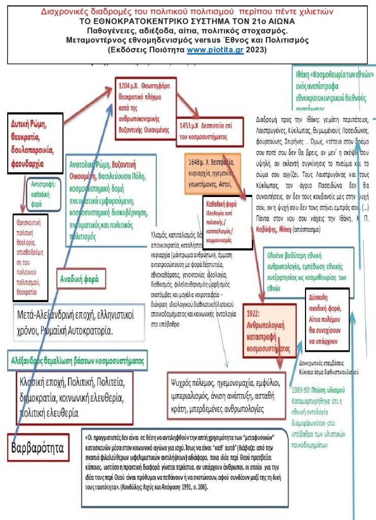 «ΤΟ ΕΘΝΟΚΡΑΤΟΚΕΝΤΡΙΚΟ ΣΥΣΤΗΜΑ ΤΟΝ 21ο ΑΙΩΝΑ. Παθογένειες, αδιέξοδα, αίτια, πολιτικός στοχασμός, μεταμοντέρνος εθνομηδενισμός versus Έθνος και Πολιτισμός» https://piotita.gr/?p=41774