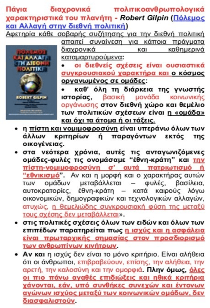 * Robert Gilpin στην εμβληματική περιγραφή της διαχρονίας των ανθρώπων, των κρατών και του κόσμου