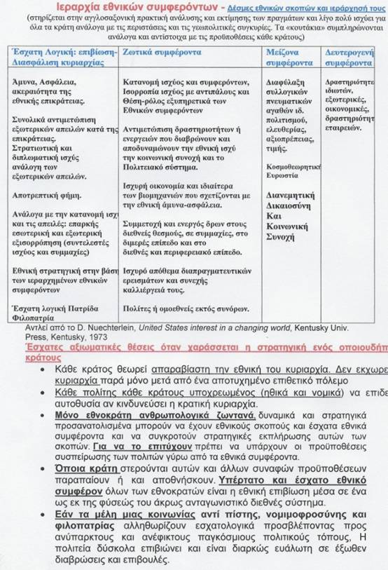7. Κυρίαρχος στόχος του κράτους είναι η κατοχύρωση της ασφάλειάς του, δηλαδή η επιβίωση, η διατήρηση της εδαφικής κυριαρχίας και της εθνικής ανεξαρτησίας/αυτονομίας (βασικό εθνικό συμφέρον).