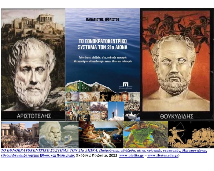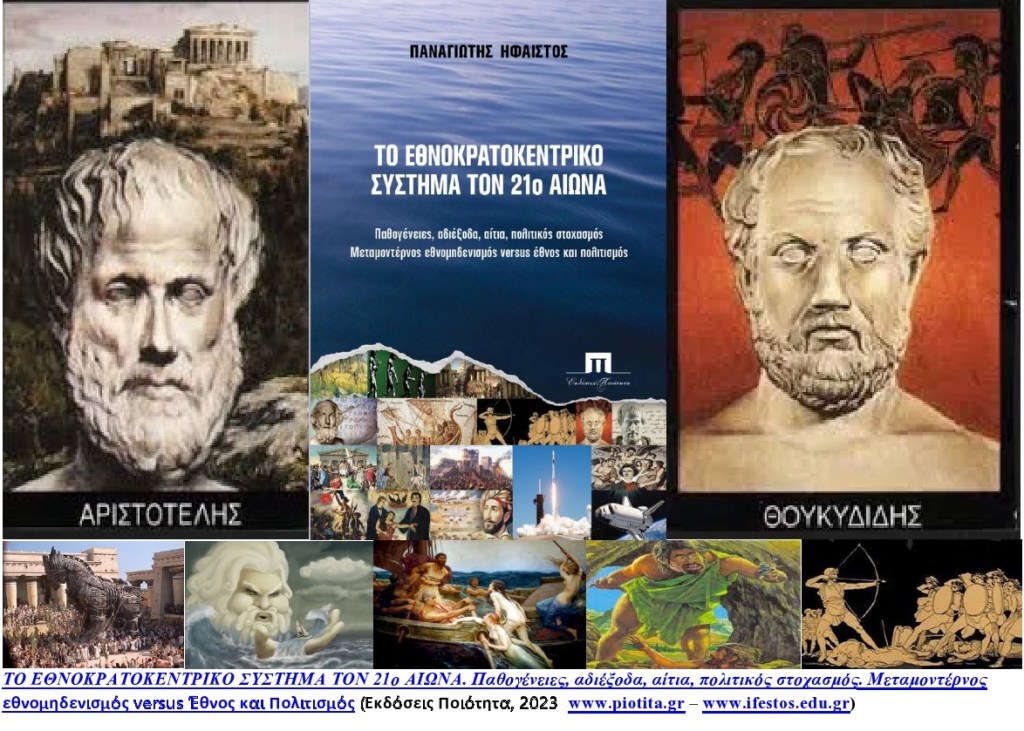 Π. Ήφαιστος, «ΤΟ ΕΘΝΟΚΡΑΤΟΚΕΝΤΡΙΚΟ ΣΥΣΤΗΜΑ ΤΟΝ 21ο ΑΙΩΝΑ. Παθογένειες, αδιέξοδα, αίτια, πολιτικός στοχασμός. Μεταμοντέρνος εθνομηδενισμός versus Έθνος και Πολιτισμός» (Εκδόσεις Ποιότητα Ιούνιος 2023 – www.piotita.gr – https://piotita.gr/?p=41774).
