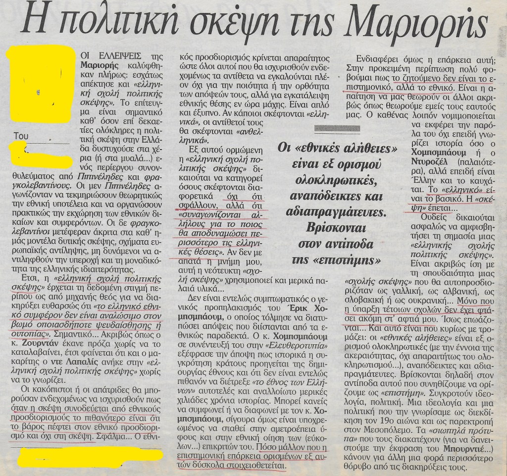 - Κυρίαρχες και ακλόνητες στάσεις και παραδοχές για την Εθνική Ανεξαρτησία ως θέσφατο και έσχατη λογική που στηρίζει την συλλογική ελευθερία
