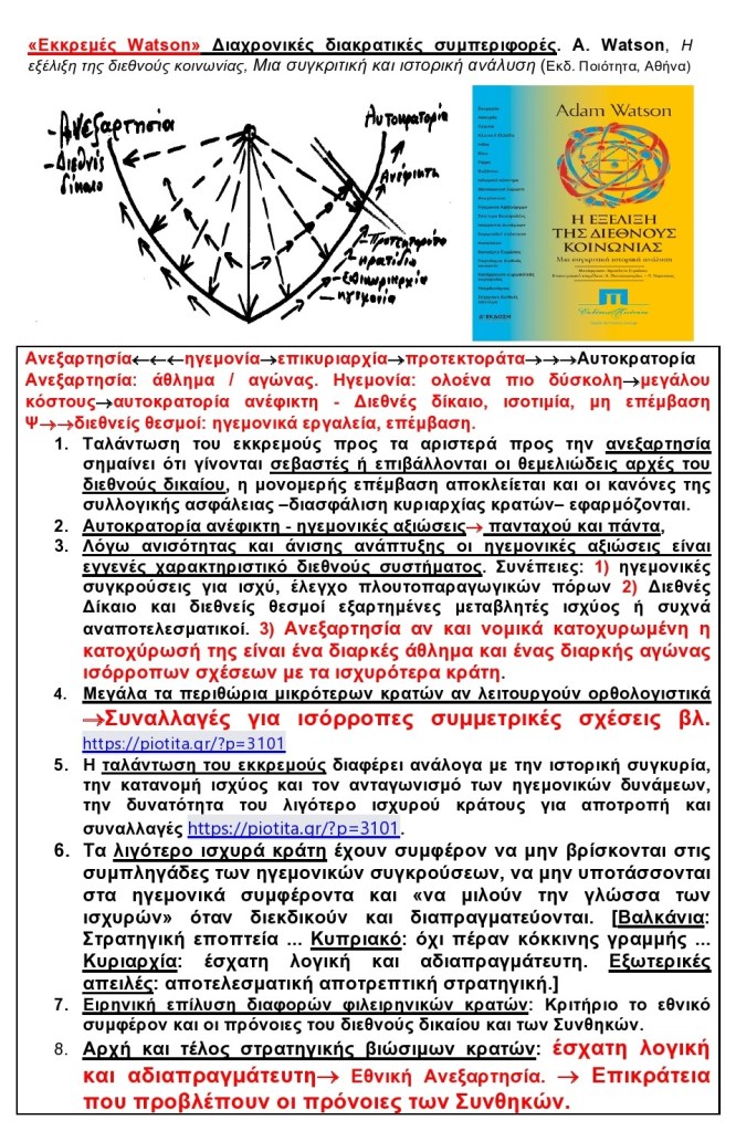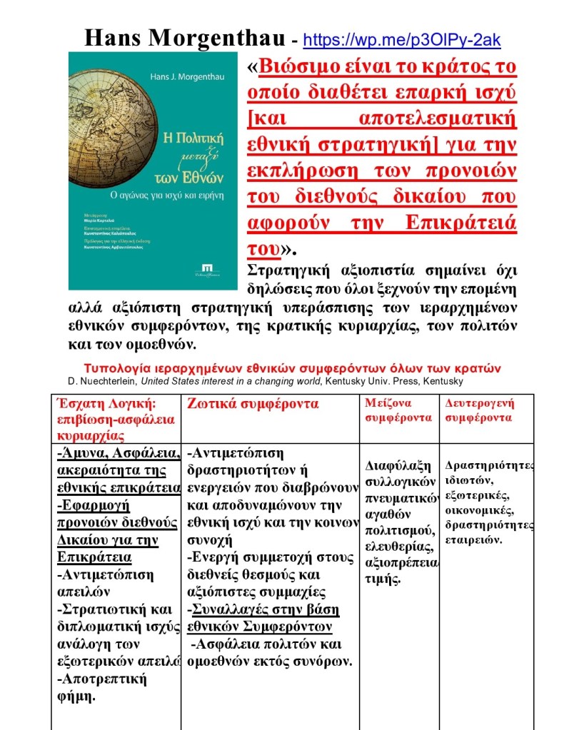 Κατηγορίες:Adam Watson, E.H.Carr, EE, Hans Morgenthau, Hedley Bull, πρόεδρος Τραμπ, πυρηνική ισχύς, πόλεμος, πολυπολικό διεθνές σύστημα, πολιτειακή συνοχή, πολιτειακή νομιμότητα, πολιτισμός, πολιτική παιδεία, στρατηγική ανάλυση, στρατηγική θεωρία, συμμαχίες, Ήφαιστος, δοκίμια, Όμηρος, Αποτρεπτική στρτηγική, Αριστοτέλης, Αιγιαλίτιδα ζώνη, Γερμανικό ζήτημα, Γεωστρατηγική, Διεθνής πολιτική, Διεθνείς σπουδές, ΕΛΕΥΘΕΡΊΑ, Εθνική Στρατηγική, Ενιαίος Αμυντικός Χώρος, Θεωρία διεθνών σχέσεων, Θουκυδίδης, Κρατικά επιτελεία, Κυπριακό, Καβάφης, Ουκρανία, ΟΗΕ, Οδύσσεια, Πόλεμος και τα αίτιά του, Περίμετρος της Ευρασίας, Στρατηγική, Συμβούλιο Ασφαλείας, Τουρκική απειλή, ήπια ισχύς, γεωπολιτική, διεθνές δίκαιο, διεθνής διακυβέρνηση, διεθνείς σχέσεις, διεθνείς θεσμοί, εθνικός πολιτισμός, εθνική ανεξαρτησία, νομικισμός, John Mearsheimer, Kenneth Waltz, Martin Wight, patron client relations, Robert Gilpin, soft power