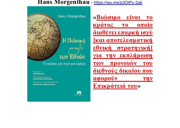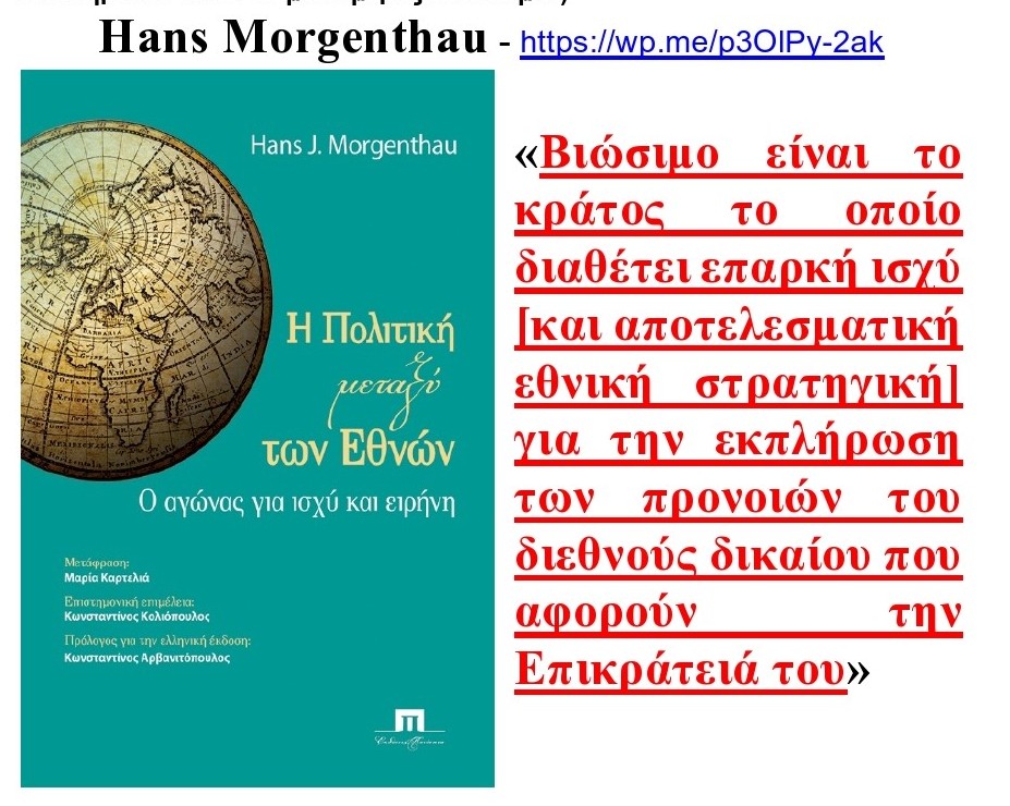 Βασικά όπως το έθεσε εύστοχα ο εμβληματικός HANS MORGENTHAU, βιώσιμο είναι εκείνο το κράτος το οποίο διαθέτει επαρκή ισχύ (και αξιόπιστη στρατηγική) ούτως ώστε να εκπληρώνει τις πρόνοιες των Συνθηκών που αφορούν την Επικράτειά του.