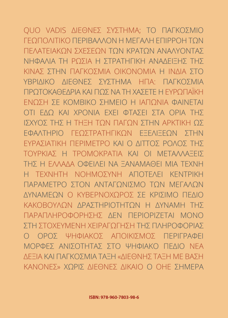 Το διεθνές σύστημα σε ιστορική μετάβαση. 21 αναλύσεις για τις αναδυόμενες προκλήσεις (Εκδ. Ποιότητα) https://piotita.gr/product/to-diethens-sistima-se-istoriki-metav/ + https://wp.me/p3OqMa-3PM